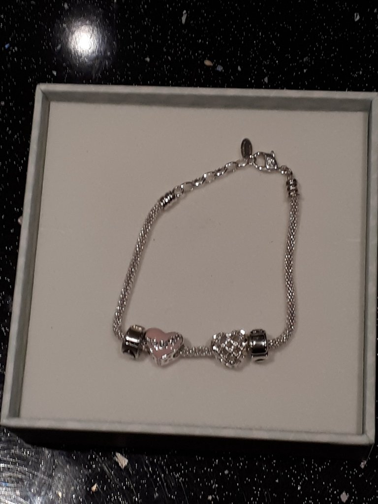 I managed to get my charm bracelet sorted today, which my lovely boyfriend bought me for Christmas. ❤ He also bought me a charm for Valentine’s Day, which I couldn’t figure out how to put the charm on. I haven’t had one of these before. So I got the people at the shop to show me how to do it and they put it on for me. With two charms and two sparkly stoppers my bracelet is felling up very nicely. 😀 And that was the best part of a very strange day.